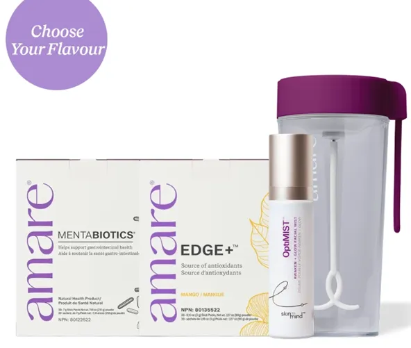 Choose Edge Flavour and combine with Mentabiotics for an easy to drink blend that combines cutting edge probiotics and prebiotics to support GUT Health. stress reduction and antioxidant protection